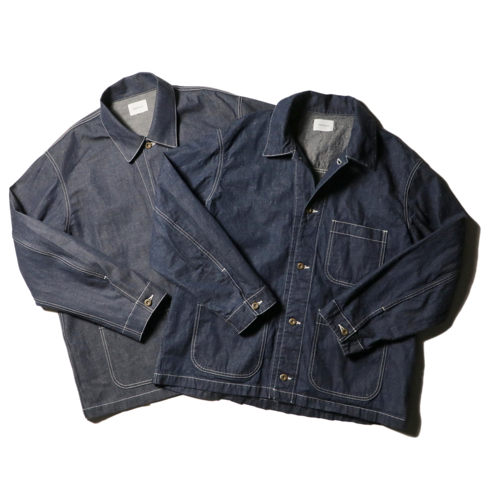 9.5oz의 오카야마현산 라이트 데님으로 제작한 커버 올이 됩니다.