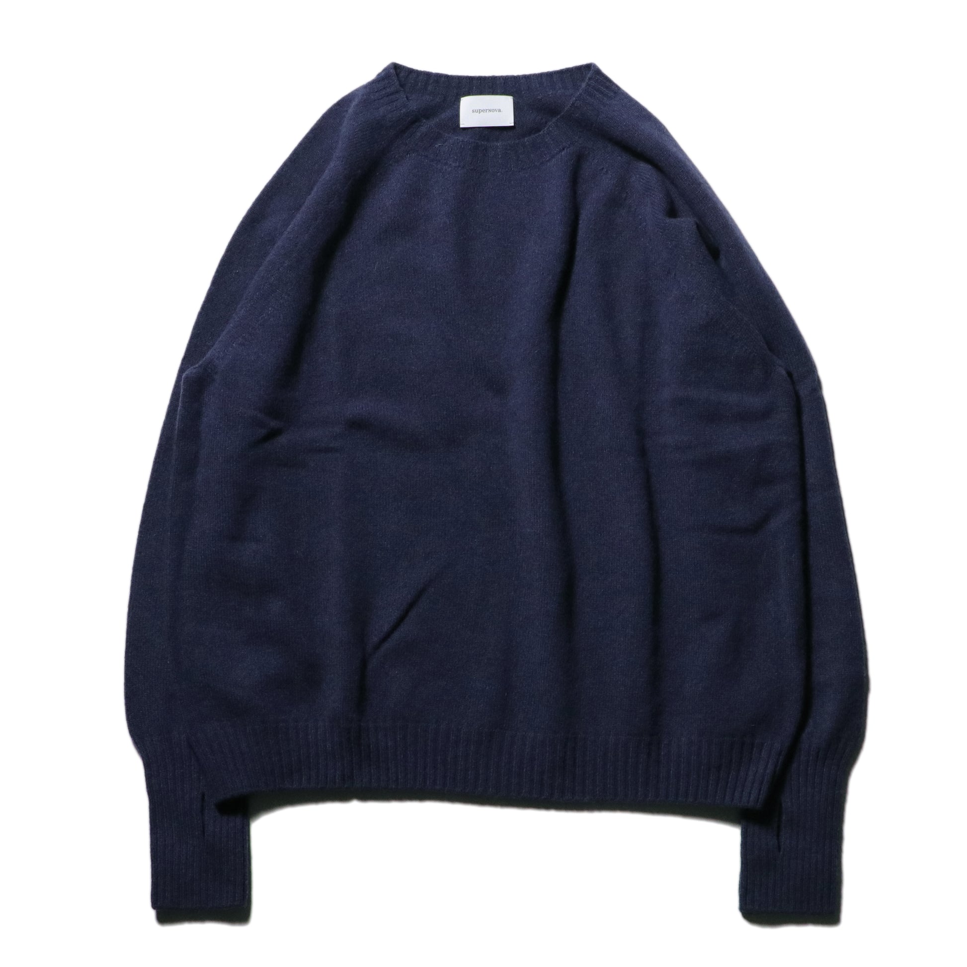 이 스웨터는 홀가먼트 기법으로 편직된 크루넥 스웨터입니다.